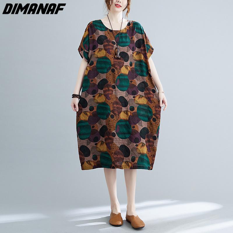 DIMANAF женское платье больших размеров, новинка 2023 года, летний стиль, с коротким рукавом, круглым вырезом, цветочным принтом, базовое свободное платье, новинка 5105