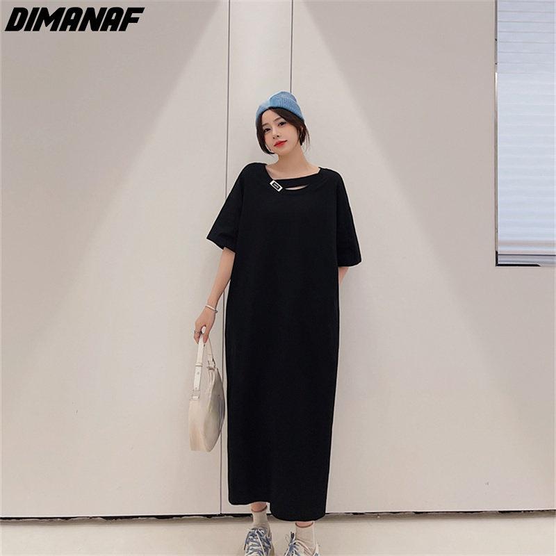 DIMANAF женское 2023 новое летнее стильное платье однотонное элегантное длинное платье с буквенным принтом свободное платье платья с круглым вырезом 3XL чёрный