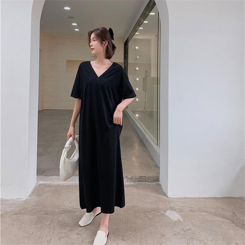 DIMANAF женское 2023 новое летнее стильное платье с однотонным принтом, элегантное длинное платье, свободное платье, платья с круглым вырезом 2XL чёрный