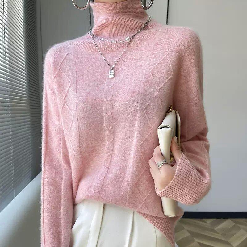 DIMANAF, осень 2023, женские свитера, зимний пуловер, топы, женские полосатые шерстяные трикотажные шерстяные футболки с круглым вырезом, базовые однотонные розовые футболки 2XL слоновая кость