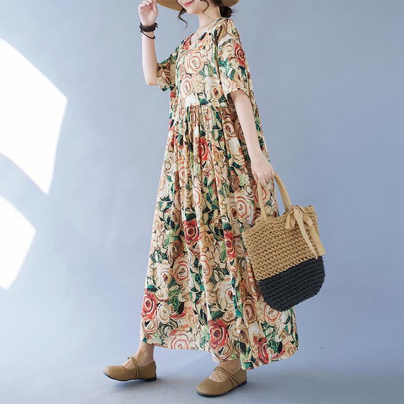 DIMANAF платье больших размеров женское 2024 новое летнее стильное зеленое платье свободные платья с круглым вырезом и цветочным принтом новинка 1083 One Size