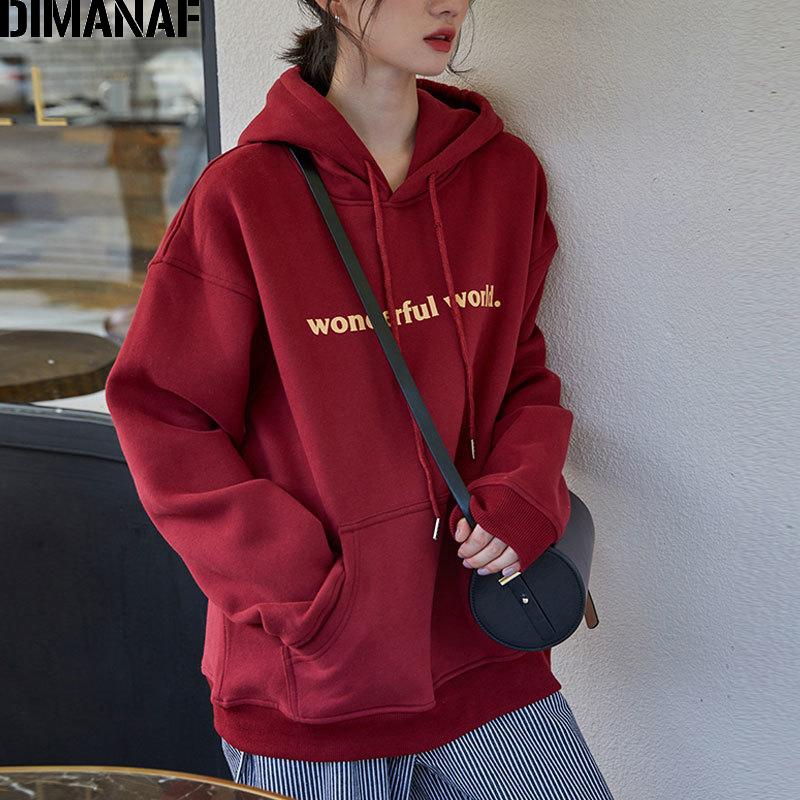 DIMANAF 2022, осенне-зимние толстовки, утепленные толстовки, пуловеры с вышивкой, синие, красные топы, женские топы оверсайз, свободный утепленный хлопок
