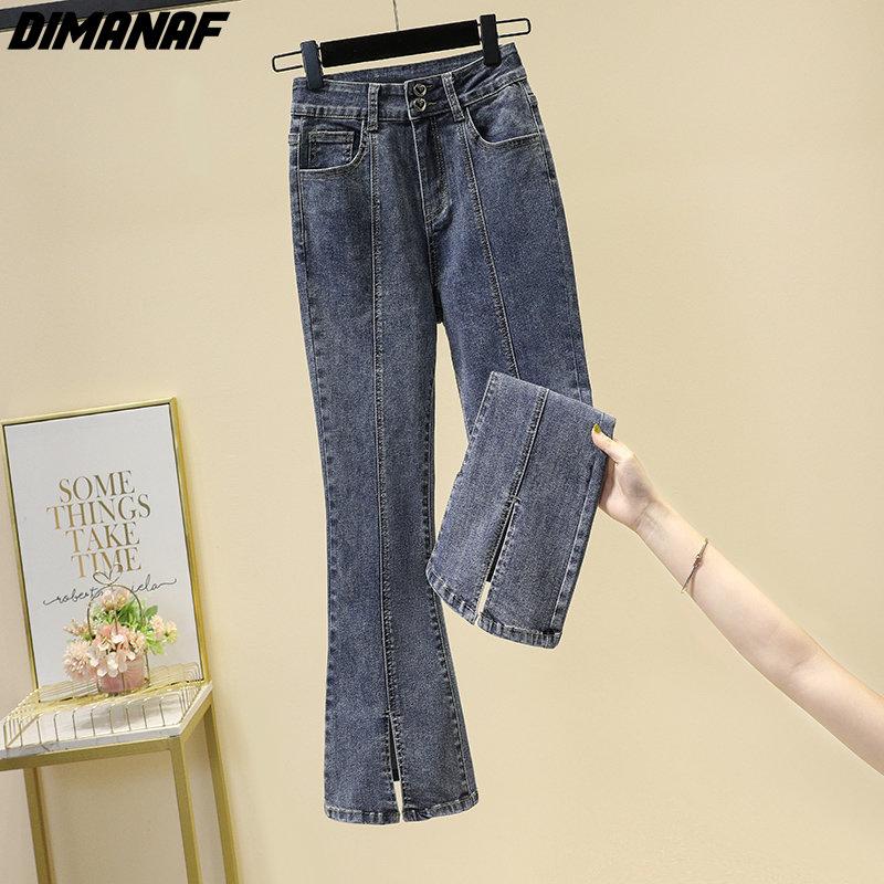 DIMANAF 2023 Большие размеры весенние джинсы женские эластичные брюки свободные повседневные лоскутные женские шаровары расклешенные синие брюки брюки 5XL