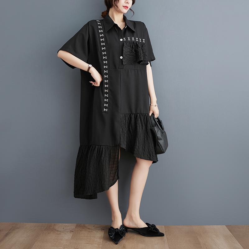 DIMANAF 2023 Летнее платье-рубашка Женское свободное платье в полоску Пляжные с половиной рукавами Нерегулярные милые модные черные повседневные винтажные женские платья с круглым вырезом