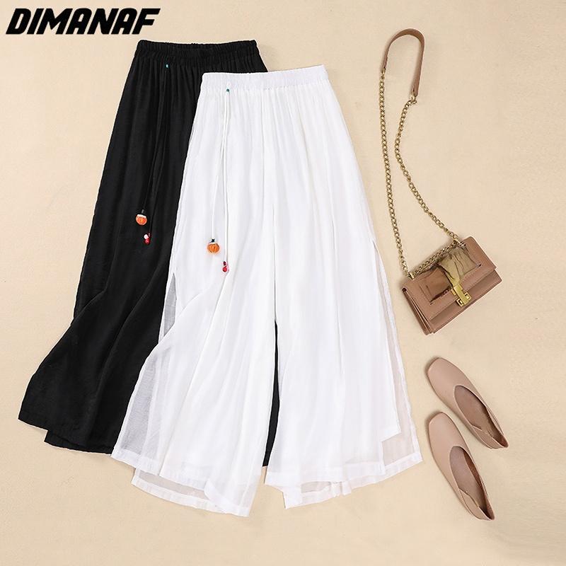 DIMANAF 2023 Новые брюки, летние женские базовые льняные эластичные однотонные свободные длинные широкие брюки белого цвета