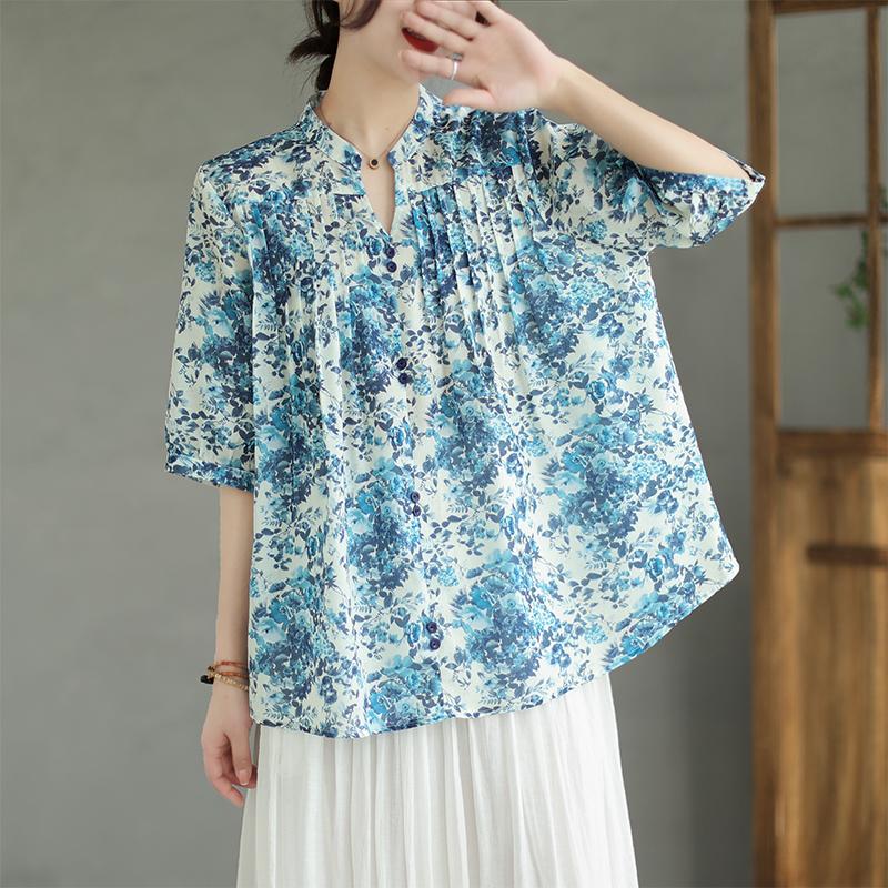 DIMANAF 2023 Футболка больших размеров Новый летний стиль Повседневный цветочный принт Женская элегантная рубашка свободного дизайна Винтажная ретро мягкая хлопковая рубашка с короткими рукавами