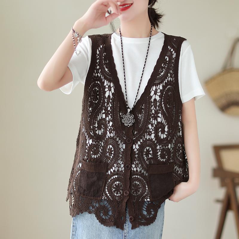 DIMANAF 2023 женский летний жилет с вырезами вязаный жилет винтажный топ куртки для похудения свободные модные топы больших размеров