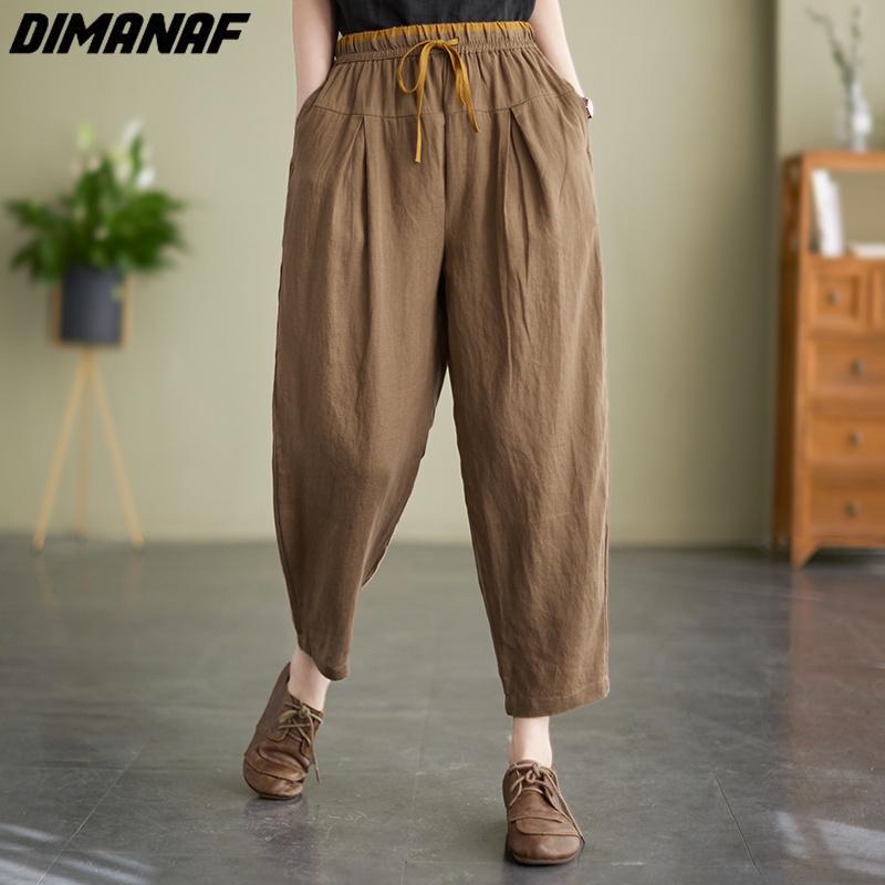 DIMANAF 2023 летние длинные брюки женские эластичные большие размеры свободные повседневные винтажные женские брюки широкие брюки хлопок лен