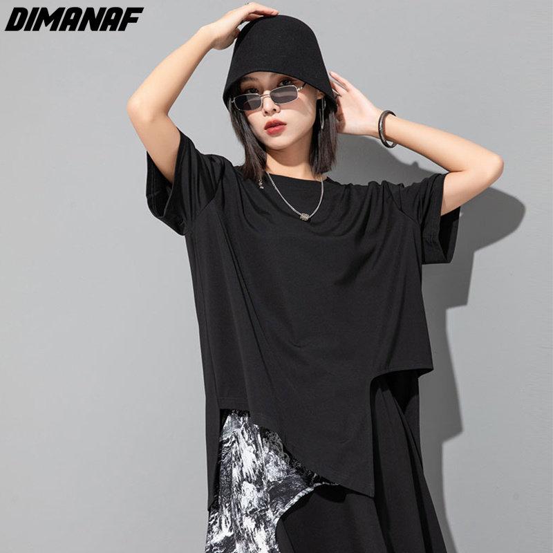 DIMANAF 2023 футболка больших размеров, летняя стильная повседневная однотонная женская одежда с круглым вырезом, свободная рубашка с короткими рукавами, черная