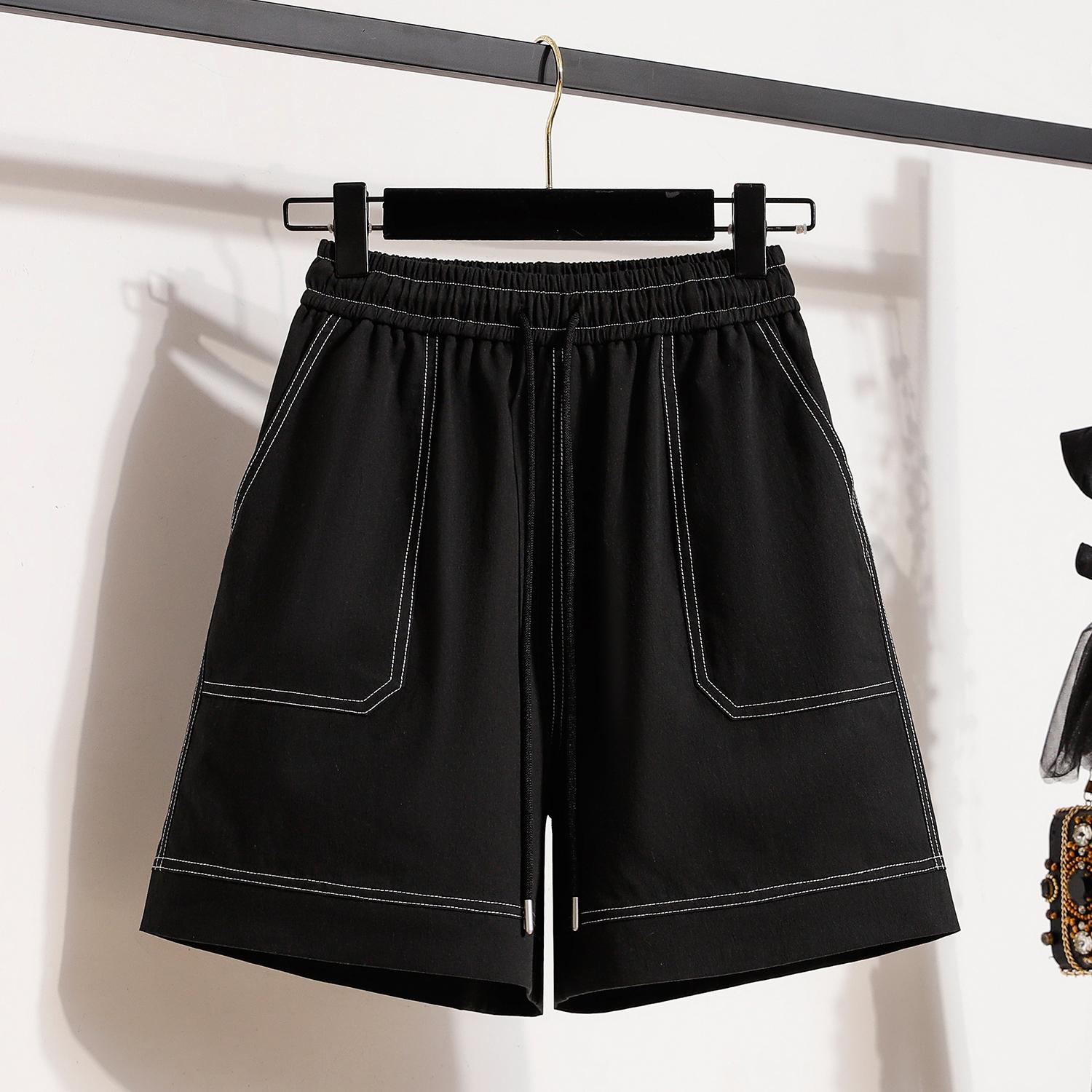 DIMANAF 2024 Большие размеры женские летние свободные брюки 5XL шорты с высокой талией эластичные широкие брюки повседневные базовые короткие брюки 5XL чёрный