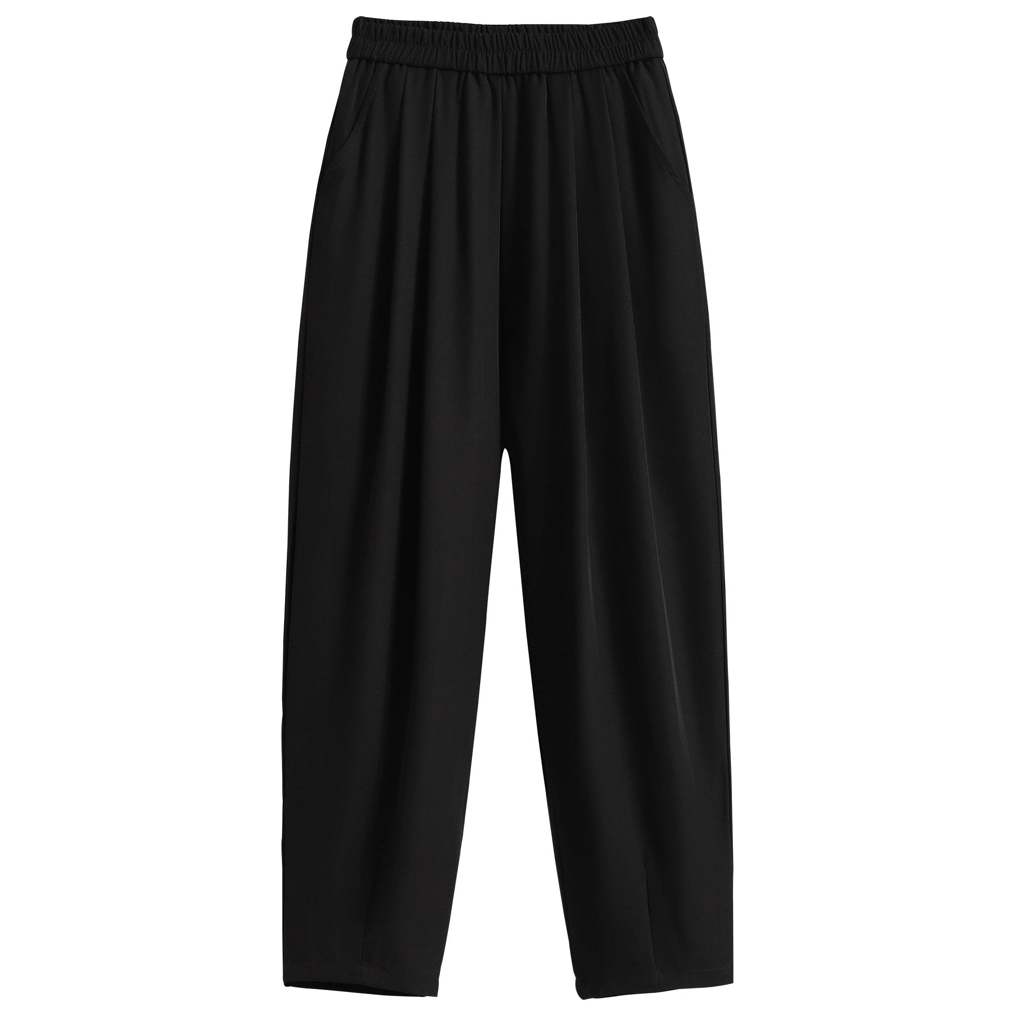 DIMANAF 2024 Лето Большие размеры женские длинные брюки-шаровары с эластичной резинкой на талии винтажные повседневные брюки однотонные хлопковые свободные брюки 3XL чёрный