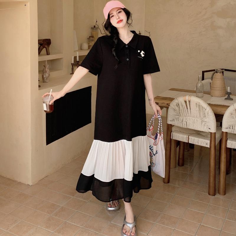 DIMANAF 2024 Новое платье больших размеров, летнее повседневное женское свободное платье с коротким рукавом и цветочным принтом, черная длинная футболка, платье L чёрный