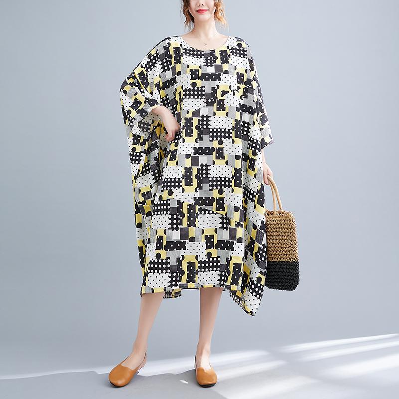 DIMANAF 2024 женское летнее платье больших размеров элегантное мягкое женское длинное платье в горошек модное свободное платье One Size жёлтый