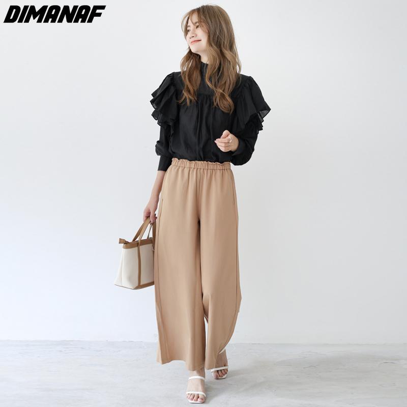 DIMANAF 2024 летние женские большие размеры повседневные широкие брюки с высокой талией эластичные однотонные стильные длинные брюки-шаровары свободные L жёлтый