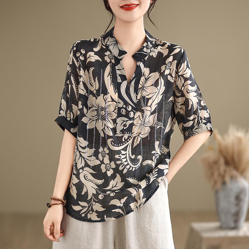 2022 Summer Clothes for Women Abstract Art Printed Summer Loose Casual T-shirt Short-sleeved V-neck Slim Fit Shirt Women
