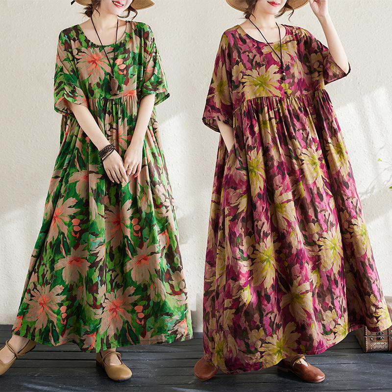 DIMANAF 2024, новое летнее длинное платье больших размеров, пляжное женское платье с круглым вырезом и цветочным принтом, праздничные модные повседневные свободные женские платья 658 One Size