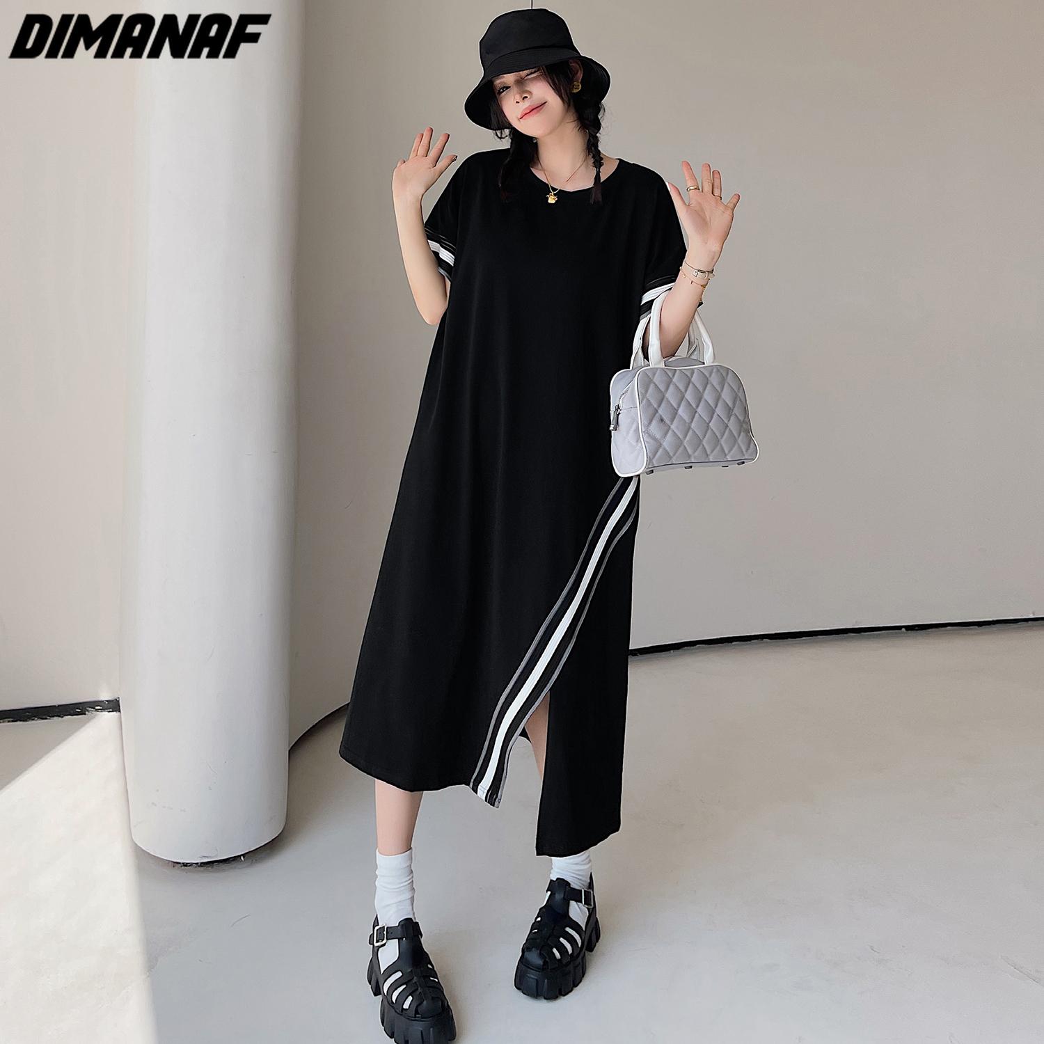 DIMANAF 2024 плюс размер летнее платье-рубашка с короткими рукавами женское повседневное свободное хлопковое модное длинное платье с сращиванием