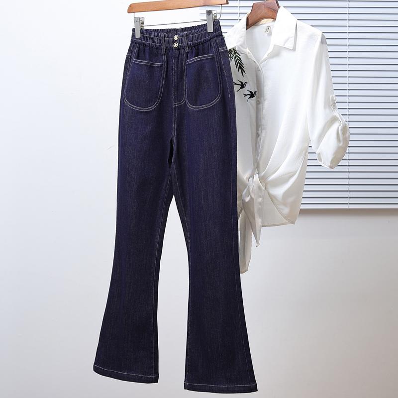 DIMANAF 2025 Большой размер Осень Женские Джинсы Брюки Деним Расклешенные брюки Эластичные Синие Брюки с высокой талией Оверсайз Новые Брюки 5XL 5XL синий