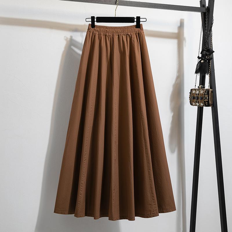 DIMANAF 2025 Весна Лето Плюс Размер Женские Новые Юбки Винтаж Эластичные Элегантные Плиссированные Юбки Свободные Высокая Талия M коричневый