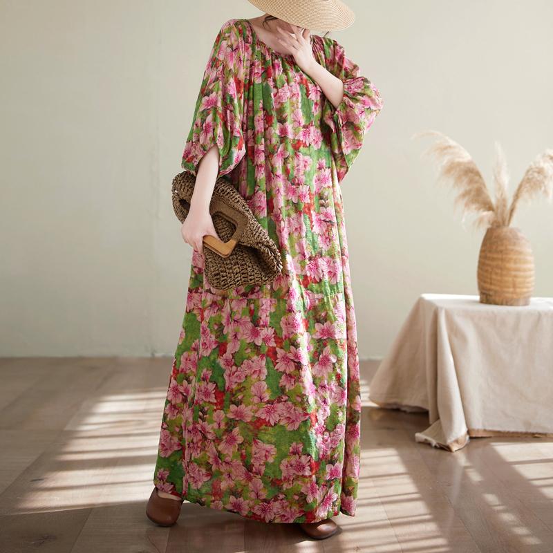 DIMANAF 2025 Летнее платье больших размеров для женщин Винтажное платье с цветочным принтом Базовое длинное пляжное элегантное свободное платье One Size