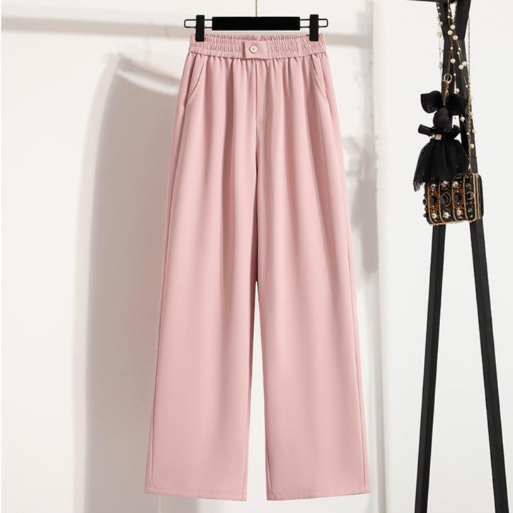 DIMANAF 2025 Летние Длинные Брюки Большого Размера Женские Эластичная Талия Повседневные Свободные Розовые Брюки Новые Однотонные Брюки 4XL