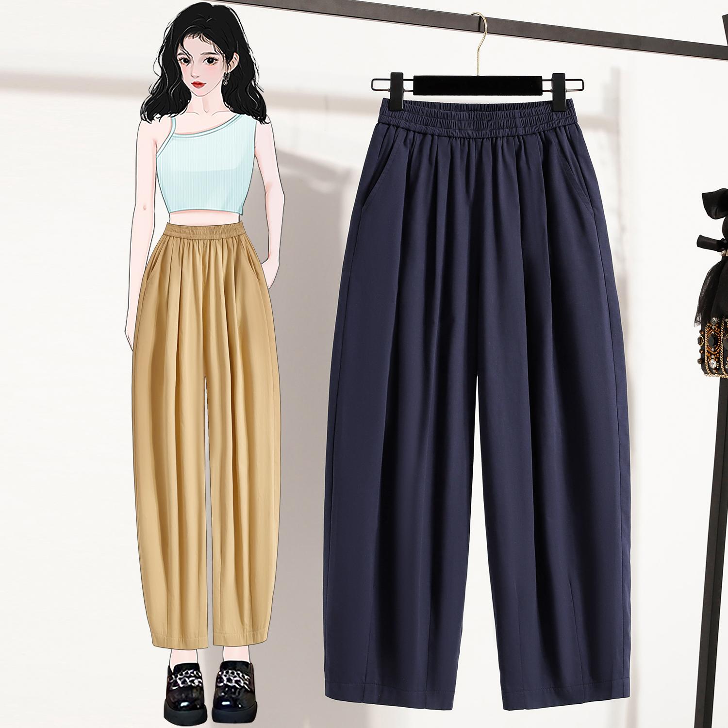 DIMANAF 2025 Лето Большой размер Длинные брюки Женские Эластичные Повседневные Брюки-гаремы Высокая талия Плиссированные Свободные Базовые Широкие брюки L чёрный
