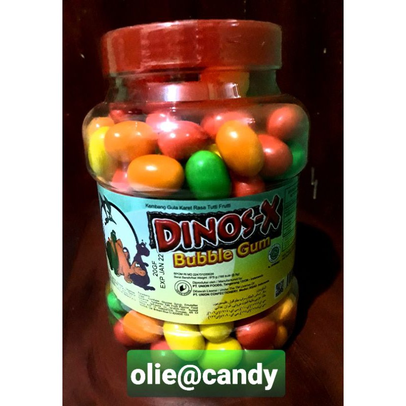 dinos-x permen bubble gum// berat bersih 975// isi 195 butir
