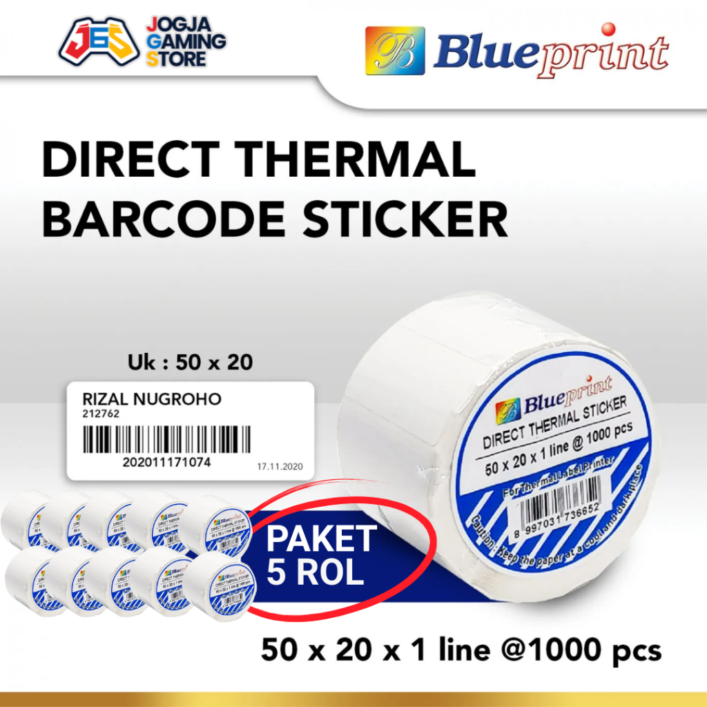DIRECT THERMAL STICKER LABEL BLUEPRINT 50x20 mm x1 Line Isi 1000 pcs Core 1 Inch - Paket 5 Rol