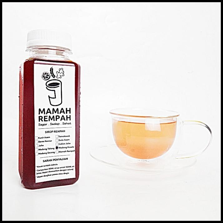 Sirup Wedang Rosela asli dengan gula alami 100% tanpa Perasa buatan, tanpa pewarna dan tanpa pengawet. Wedang Rosela ini sangat baik untuk kesehatan.