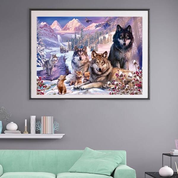 DIY Алмазная картина без рамы с принтом волка, Многоцветный