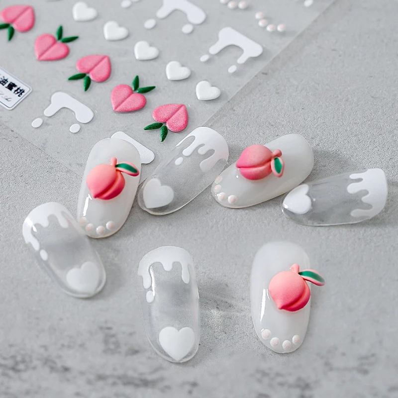 DIY Очаровательная леди крем розовый персик фрукты 5D мягкие рельефы самоклеящиеся наклейки для ногтей милые 3D украшения для ногтей наклейки ...