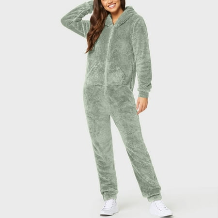 Pants for Women Clearance Women Long Sleeve Hooded Jumpsuit Pajamas Casual Winter Warm Rompe Sleepwear
