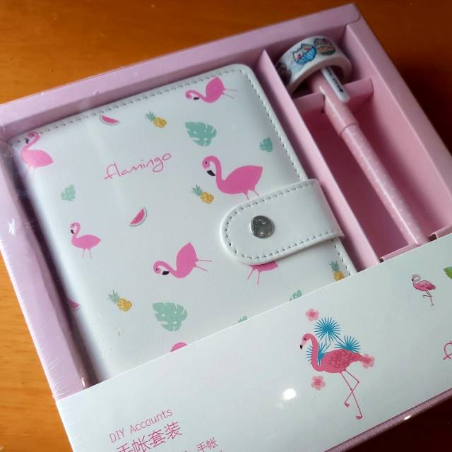 Covernya bergambar flamingo dan disediakan juga washi tape lucu dan sebuah bolpen. Dalam buku tulis ini, terdapat weekly plan, monthly plan, kertas grid dan kertas biasa. Buku ini gampang dibawa kemana-mana dan paling cocok untuk dijadikan sebuah planner untuk kehidupan sehari-hari.