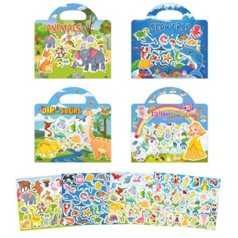 DIY Sticker Bag Besar ini adalah mainan yang berbentuk sticker yang bisa ditempelkan dimana pun dan cara memainkannnya sangat mudah saat membuka bukunya sudah tersedia berbagai macam gambar sesuai variasi yang dipilih dan sticker ini sangat lengkap ya moms. Sticker ini bisa ditempel berkali-kali di tempat yang berbeda.