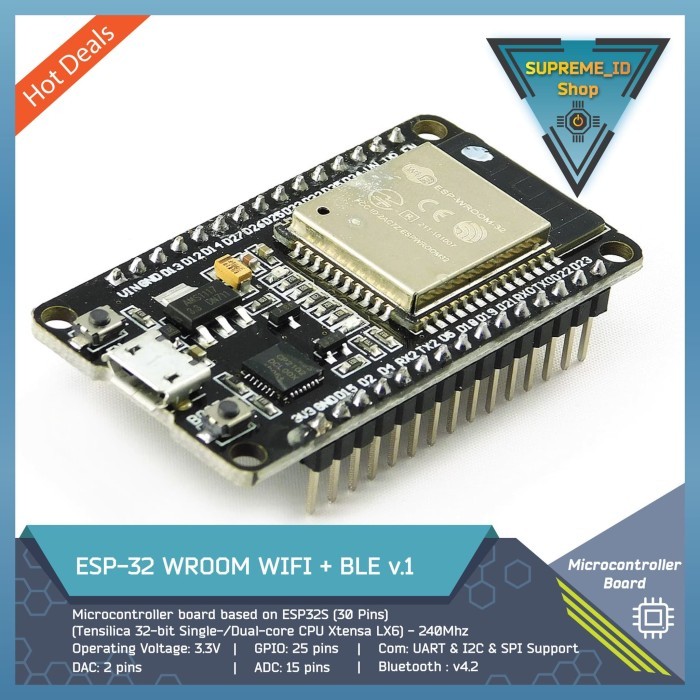 DN99 ESP-32 WROOM WIFI + BLE Development Board (30Pin) | Arduino Alternatif