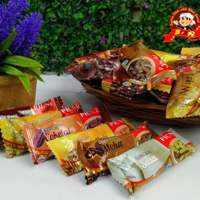 Dodol picnic aneka rasa ini mempunyai banyak rasa seperti durian, cocopandan, jambu, bluberi, stroberi, nanas, cokelat, kurma, moca, wjien, jahe dan susu. Nikmati paduan kelezatan dodol picnic dengan aneka rasa buah pilihan.