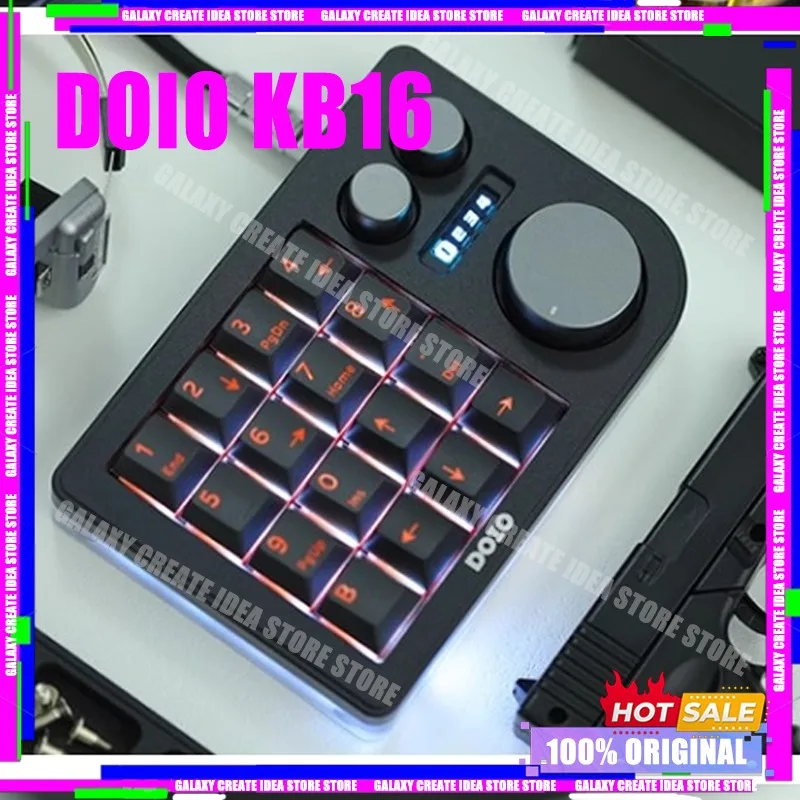 DOIO KB16-01 16 Keys Mini Mechanical Keypad OLED Screen Customization 3 Knob Customized Controller Windows PC Peripherals Kyepad