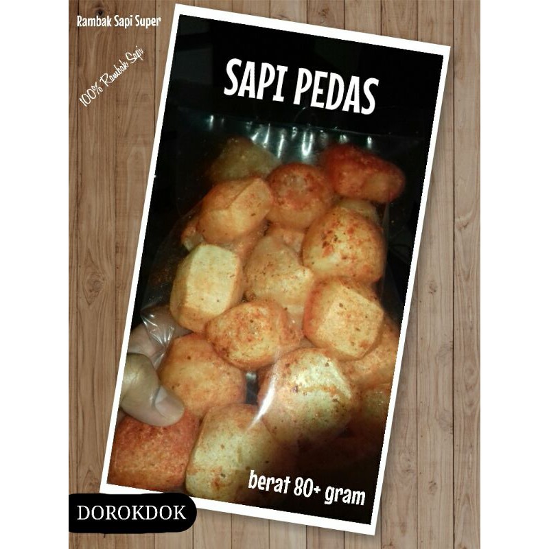 DOROKDOK /Rambak sapi ini terbuat dari kulit sapi pilihan, dengan Varian Rasa Sapi pedas yang bersahabat dengan lidah dan memiliki rasa gurih dan renyah seketika saat digigit, Sehingga cocok untuk dijadikan camilan dimana saja, bisa dirumah, di sekolah, dikantor, atau dirumah Camer... :)