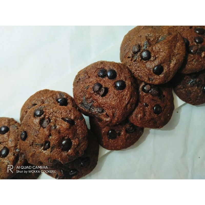 Jual double chocodip cookies asli yang bakalan bikin kangen. Kuenya dibuat dengan menggunakan resep otentik yang dijamin kenikmatan rasa dan teksturnya. Rasa manis yang pas dipadu dengan tekstur kue yang cruncy plus dobel coklat menjadikan kue ini pasti bikin nagih.