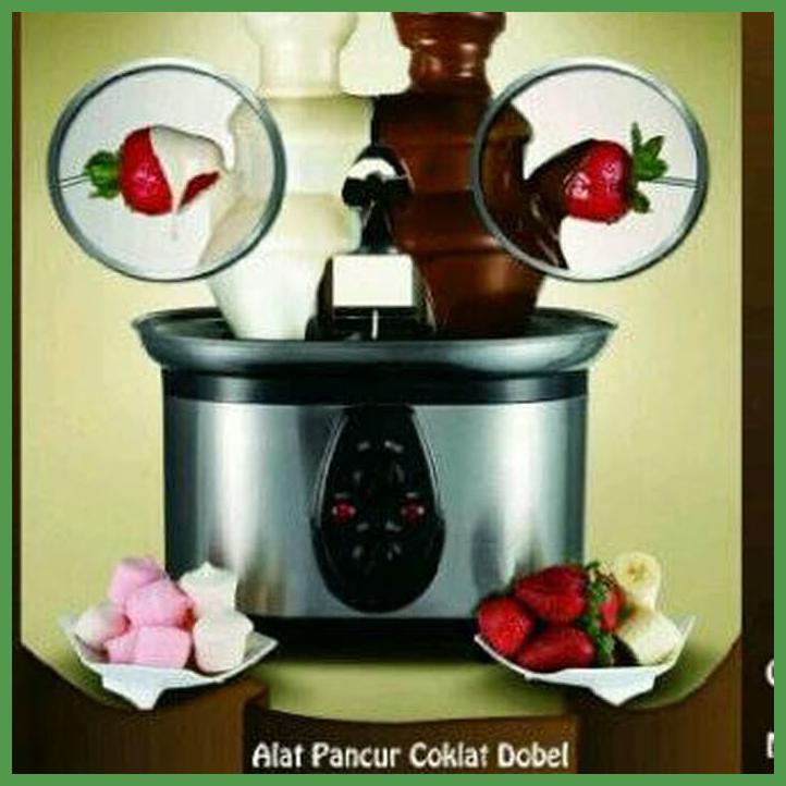Double chocolate fountain : mempermudah anda menikmati sate buat coklat dengan 2 rasa coklat yg berbeda.Selain cocok untuk acara resepsi,kantor,arisan,ulang tahun maupun acara santai lainnya,alat ini bisa dijadikan bisnis loh...