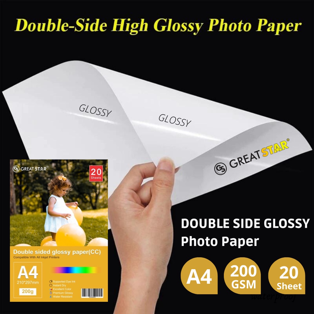 DOUBLE SIDE GLOSY/PHOTO PAPER A4/20lembar waterproff