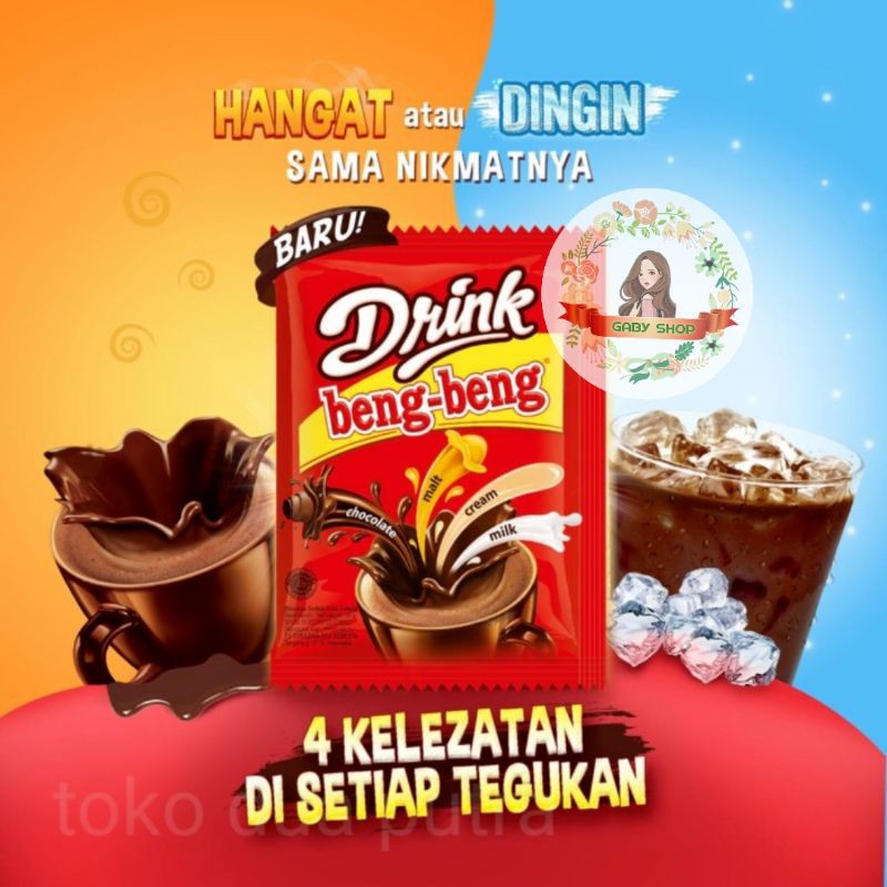 Beng Beng brand dari Mayora Grup mengeluarkan satu varian serbuk minuman coklat yg khas. Produksi . Torabika Eka Semesta - Jakarta, yg terkenal dgn serbuk2 minuman moca-nya. Beng Beng Drink merupakan satu minuman serbuk coklat yg di klaim mempunyai 4 kelezatan utama di setiap tegukannya. 4 bahan kelezatan utama itu terdiri dari Cokelat khas Beng Beng, Malt yg sehat, Krim nabati yg enak, dan Susu dgn racikan yg pas. Minuman coklat yg tidak terlalu kental shg ga bikin enek, tidak terlalu manis atau pahit asal sesuai takaran, dirasa pas buat sebagian penikmatnya. Dikemas dgn kemasan yg sangat baik khas Beng Beng Cokelat Caramel-nya yg melegenda. Netto per-sachet @29gr, beratribut lengkap BPOM RI dan Halal MUI. Silahkan di order.