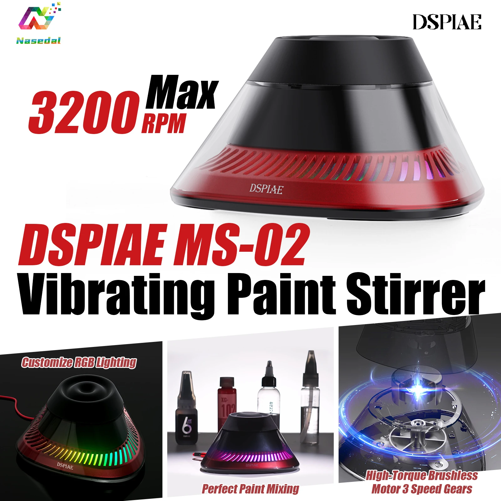 DSPIAE MS-02 Oscillating Paint Stirrer Max 3200 RPM for Gundam Model Paint Shaker Tools with App Smart Control Hobby DIY Project