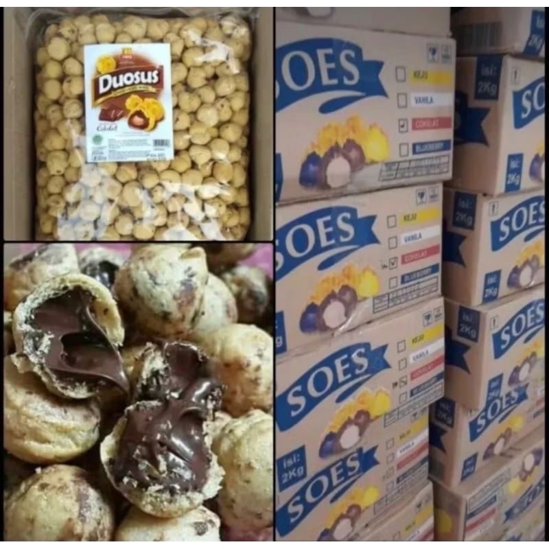 Soes yang dijual adalah jenis SOES KERING yang dipanggang dengan sangat renyah dan terdapat lelehan coklat di tengah soes tersebut. Keuntungan dari rasa renyah pada Duosus Coklat adalah memberikan sensasi yang unik dan nikmat saat dikonsumsi. Selain itu, keuntungan dari lelehan coklat pada Duosus Coklat adalah memberikan rasa coklat yang lezat dan menambah kenikmatan saat dikonsumsi.