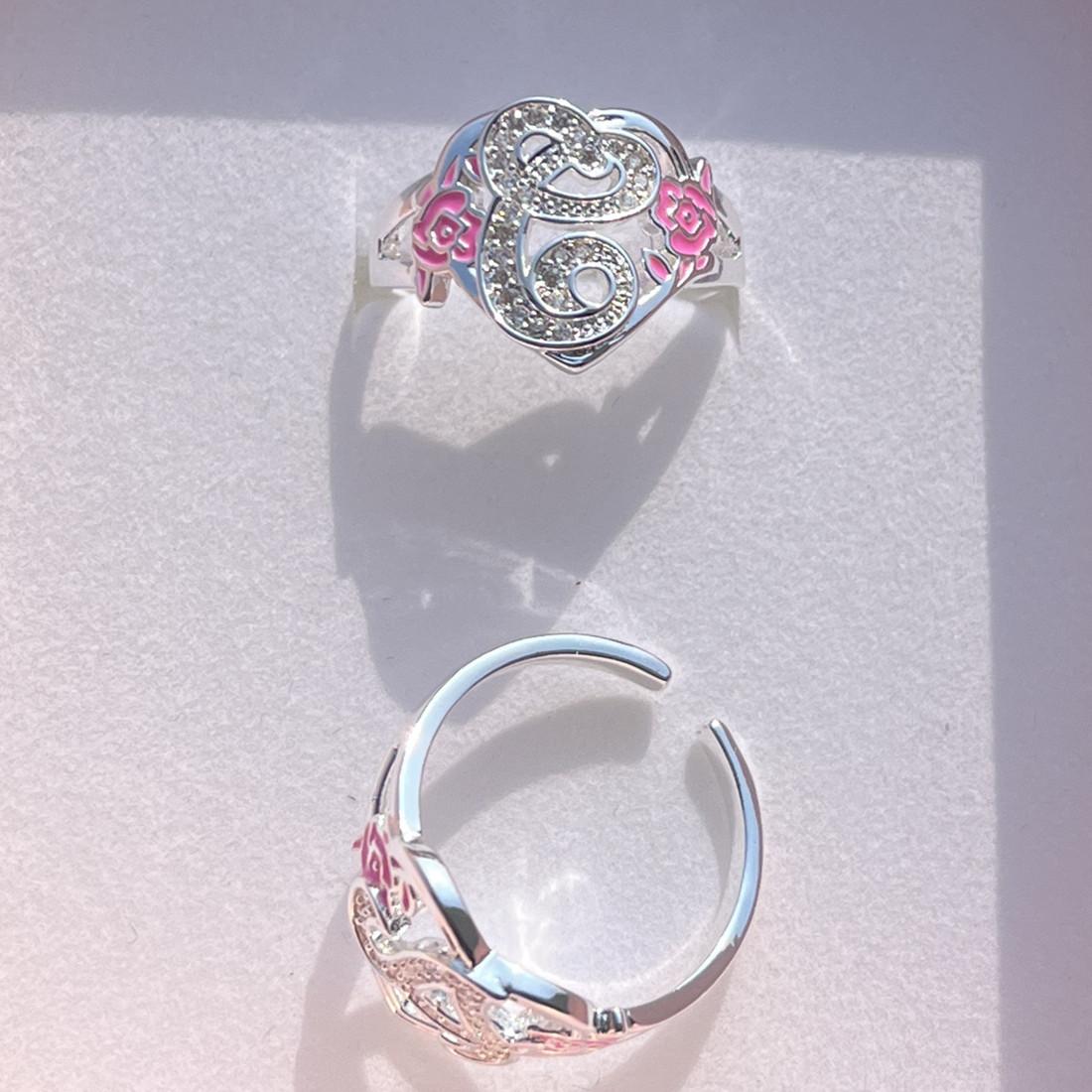 DUOYING регулируемое кольцо с инициалами в форме сердца для женщин, персонализированные эмалированные кольца с цветком и буквами AZ, модные ювелирные изделия в стиле хип-хоп Z-Resizable серебряный