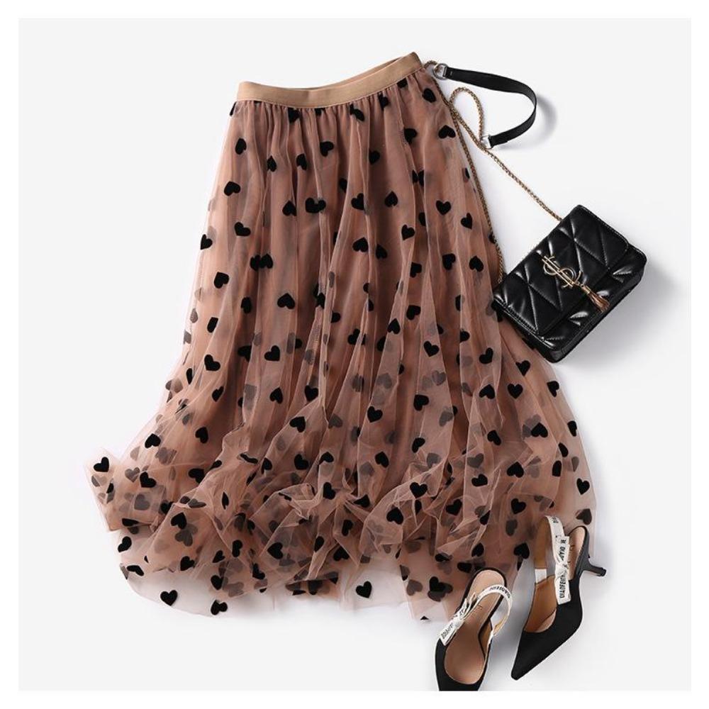 DX~~Новая большая распашная юбка А-силуэта, полуюбка в горошек с флокировкой, весенне-осенняя женская газовая юбка для похудения средней длины, летняя сетчатая юбка One size