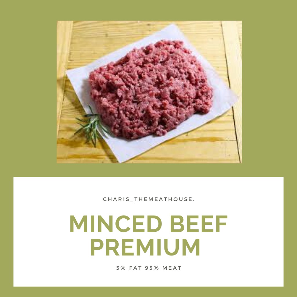 Daging giling Kualitas PREMIUM 100% original import AUS ( bukan daging yang diinject dengan air ataupun fat ya,ataupun dicampur dengan jeroan ). Komposisi daging ONLY 5% fat dan FULL 95% meat (real composition) .Langsung digiling dan di vacummed pack untuk menjamin kesegarannya. Great OPTION untuk kamu yang punya healthy lifestyle & cocok untuk anak2 or even untuk MPASI .Cocok untuk dimasak aneka jenis makanan dan dicampur dengan bahan lain.