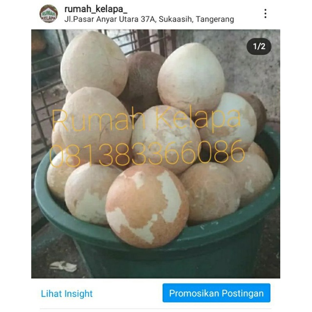 Daging kelapa segar bulat utuh sudah dikupas batok dan masih terdapat air kelapanya, tersedia pilihan yang tua, sedang dan agak muda bisa di sesuaikan dengan kebutuhan.