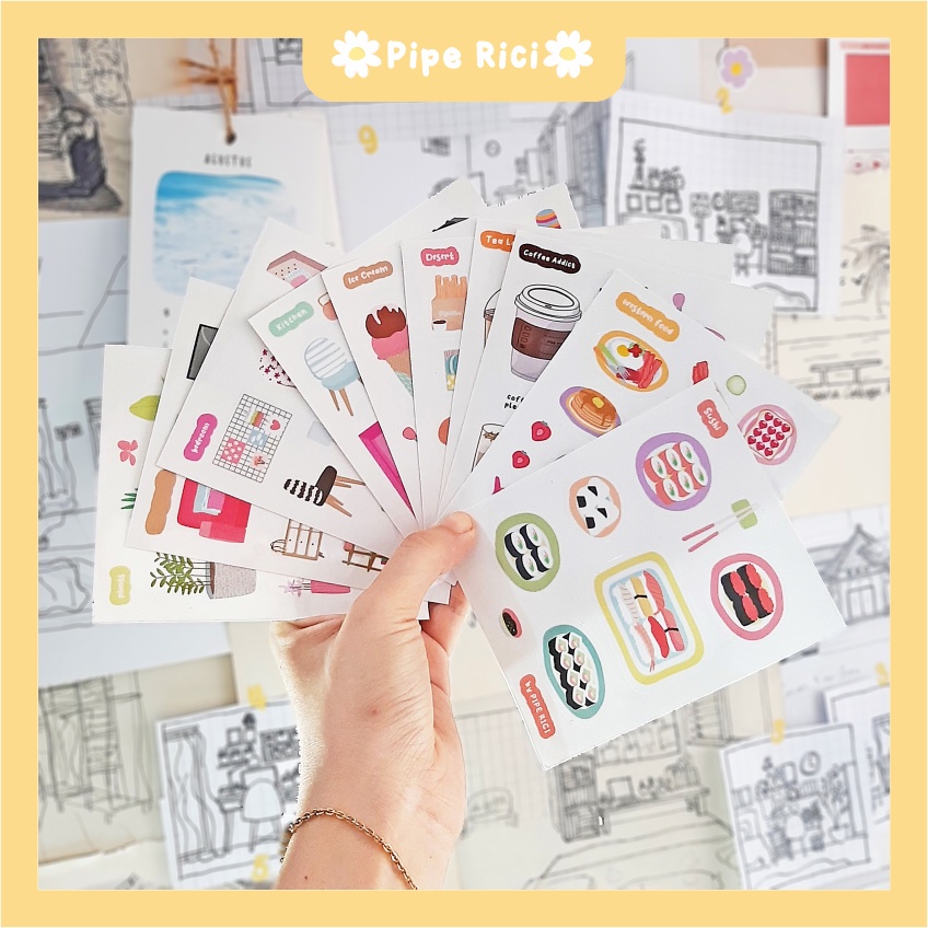 Daily Sticker Edition merupakan sticker ilustrasi barang-barang sehari-hari di sekitar kita. mulai dari furniture, makanan, minuman, tanaman, dan cemilan. sticker ini cocok bgt untuk menghias journal, planner, diary, hp, dan untuk hiasan lainnya (waterproof)