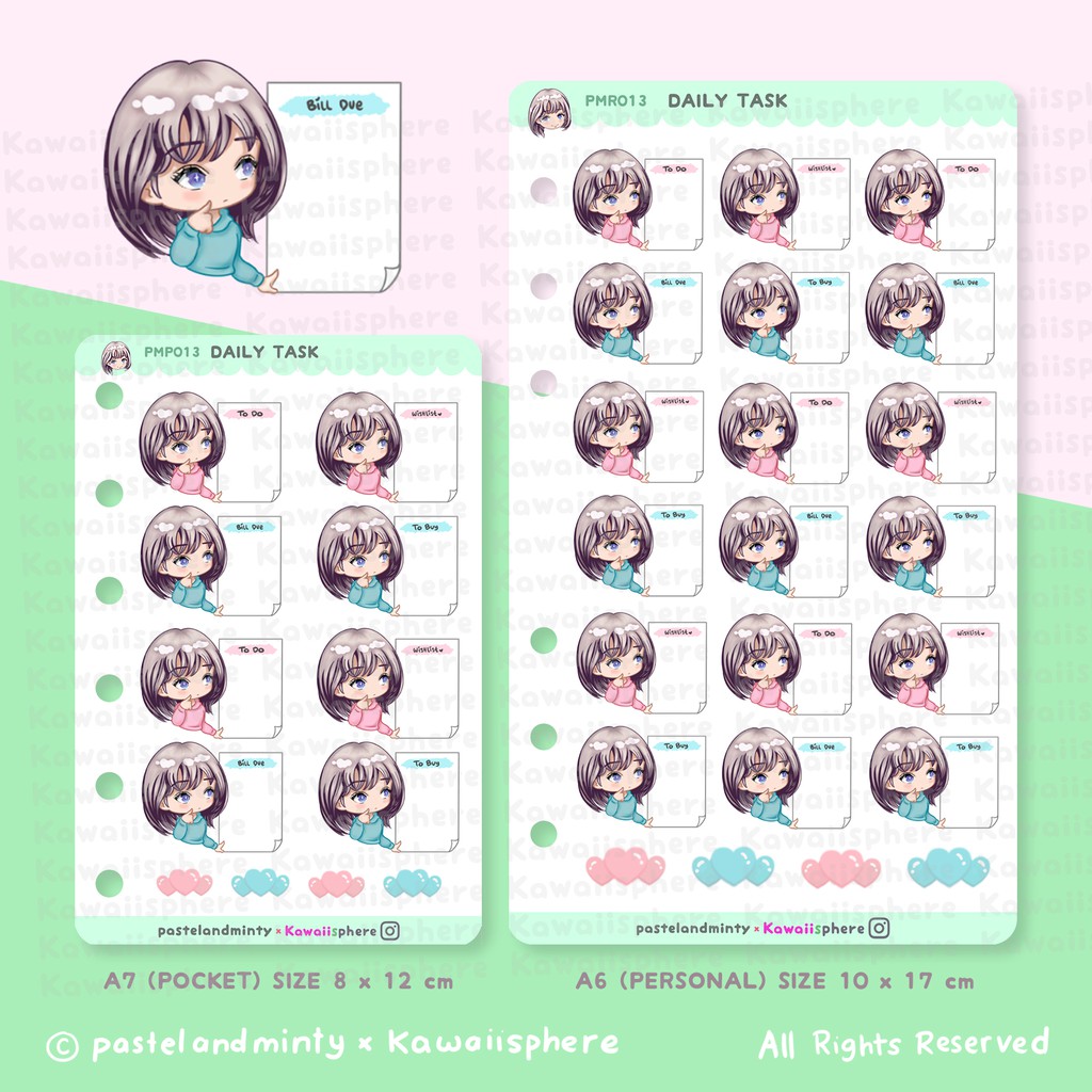 Daily Task | A6 / A7 Ring Binder Planner Refill Sticker Pastelandminty